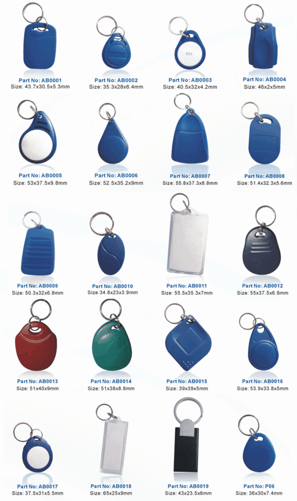 ABS key fobs are widely used in access control areas, identification, door keys, attendance, parking lots, etc.. They can contain LF, HF and UHF chips as well as dual chips too. They are exceptionally durable and offer excellent resistance to water and dust.